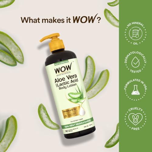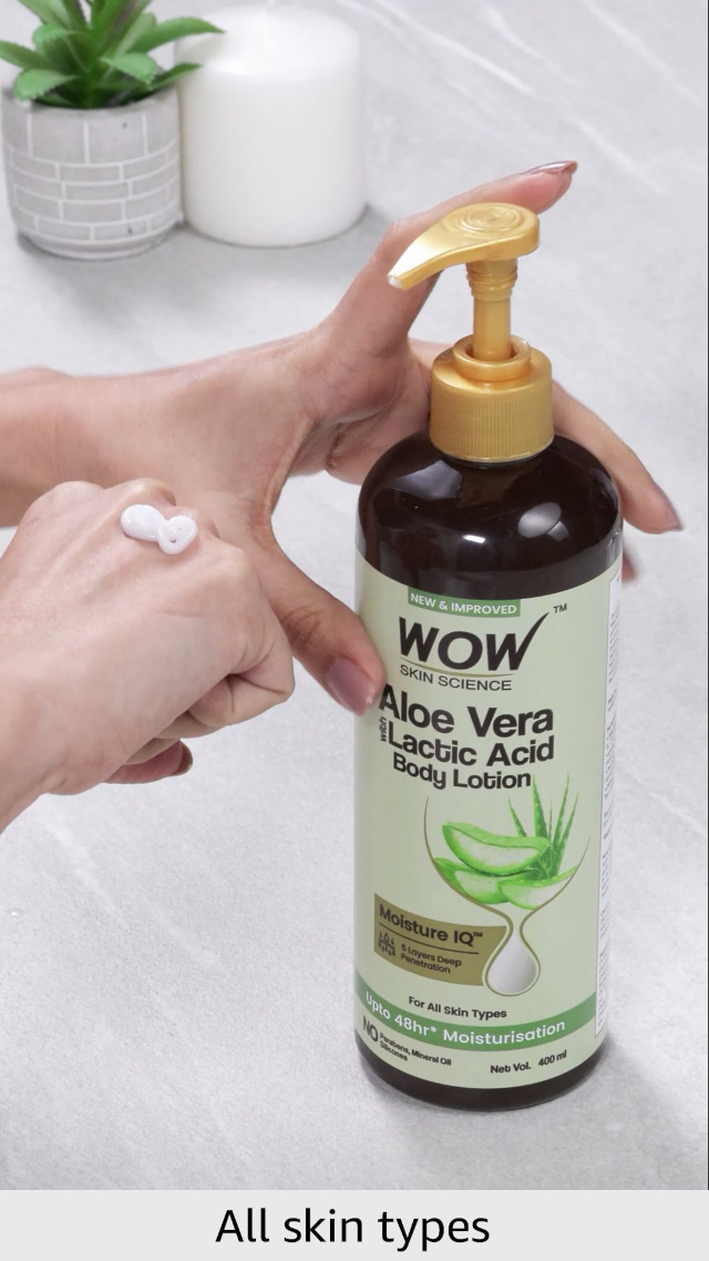 Packed with the goodness of a host of beneficial ingredients WOW Skin Science Aloe Vera Body Lotion will not only deliver the desired results that you expect but also care for your skin Holistically healthy formulation totally without mineral oil parabens silicones color & propylene glycol (PG). Non-greasy lightweight and quick absorb lotion that penetrates skin swiftly locks in moisture. Aloe Vera Extract is an anti-inflammatory and moisturizing ingredient that eases rashes itching and swelling. Hyaluronic Acid is an anti-aging hydrator that can hold 1000 times its weight in water to help keep the skin plump. Bioactive ingredients attract moisture boost collagen and soothe inflammation to keep skin young soft and smooth all day long. Works beautifully on oily skin can be used round the year summer or winter.