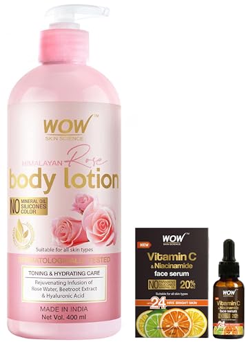 WOW Skin Science Brightening 20% Vitamin C Face Serum & WOW Skin Science Himalayan Rose Body Lotion For Light Hydration - Normal To Oily Skin - with Rose Water