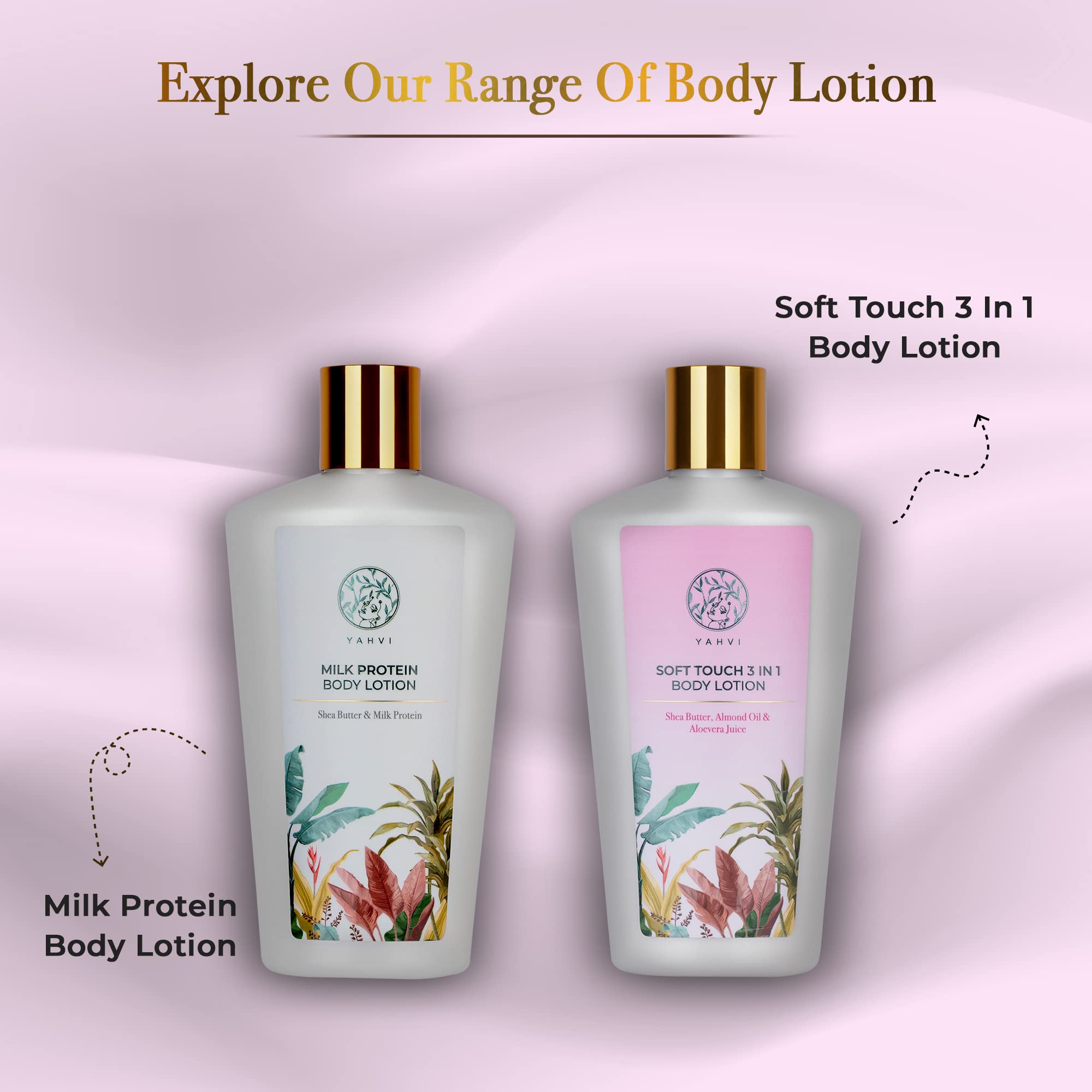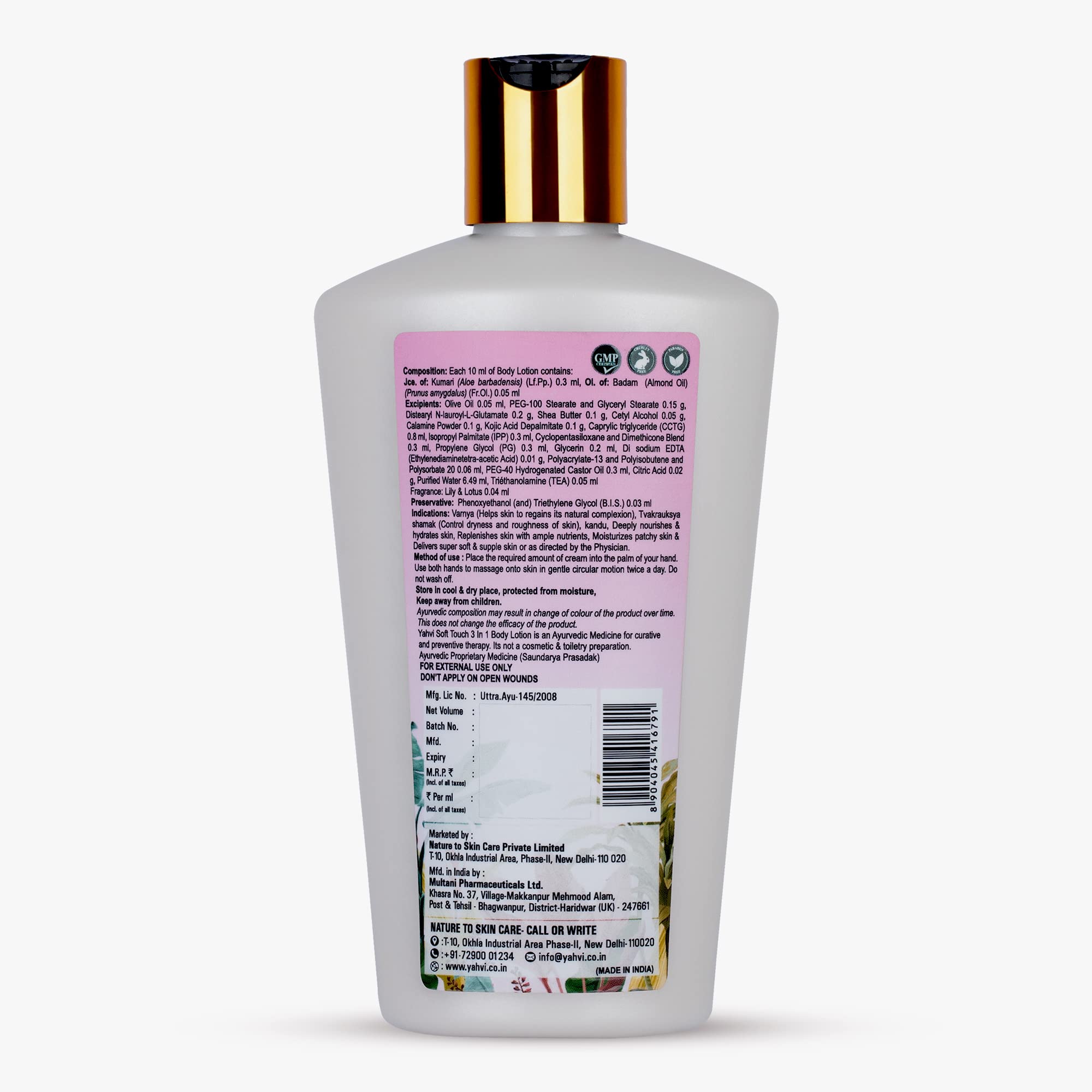 Yahvi Soft Touch 3 in 1 Body Lotion | Enriched with Shea Butter Olive Oil & Almond Oil | Replenishes Dry Skin | Brings Out Natural Complexion | For All Skin Types | Ayurvedic Formula-250ml