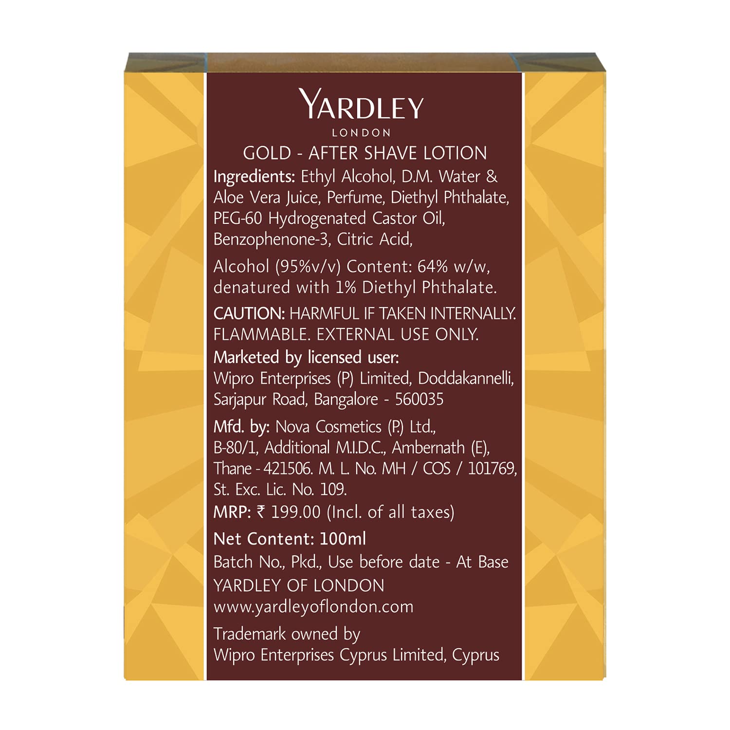 Elevate your grooming routine with Yardley London Gold After Shave Lotion a masterpiece that combines classic elegance with the healing properties of Aloe Vera. This exceptional lotion is designed to cool and soothe your skin after shaving leaving it refreshed and revitalised. The captivating scent of Yardley Gold After Shave is timeless setting you apart with an alluring fragrance that lingers throughout the day. But this lotion offers more than just a delightful scent. Aloe Vera known for its moisturising and skin-reviving qualities works its magic to heal cuts and rashes ensuring your skin remains smooth and free from irritation.With a legacy spanning over 250 years Yardley London is a symbol of premium quality authentic English luxury and timeless elegance. We specialise in classic and premium floral fragrances and our commitment to excellence is unwavering. Immerse yourself in the quintessential English fragrance experience with Yardley Gold After Shave Lotion. It's more than an after-shave; it's a testament to your refined taste and appreciation for unmatched quality and luxury.