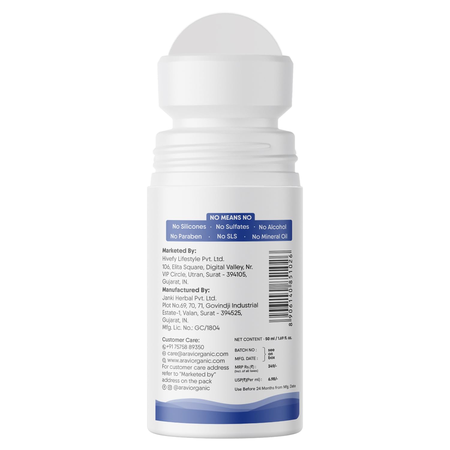 Aravi Organic Cooling Underarm Roll-On | 5% AHA 2% Kojic Acid & 1% Mandelic Acid | Controls Odour & Sweat | Reduces Pigmentation & Exfoliates | Alcohol-Free & Aluminium-Free | Fresh Aqua Fragrance | 50ml
