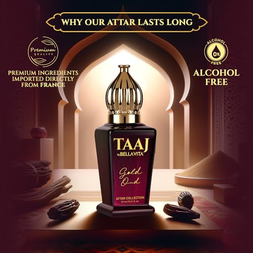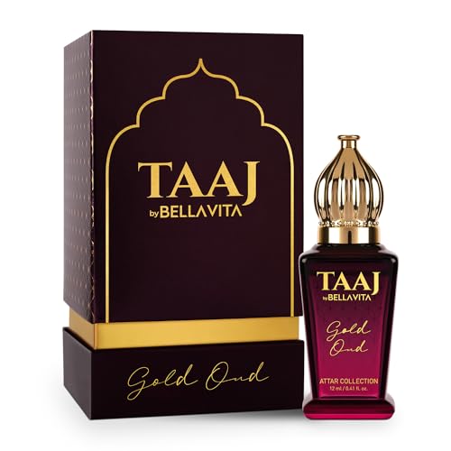 BELLAVITA TAAJ Gold Oud Unisex Long Lasting Attar for Man and Woman 12ml | Caramel, Rose, Jasmine and Orris | Non-Alcoholic Roll On | Ideal Gift for Men and Women