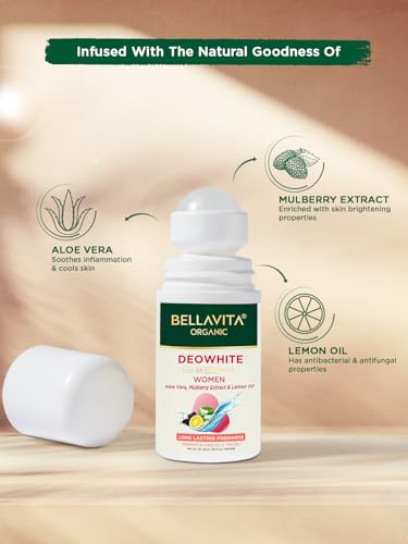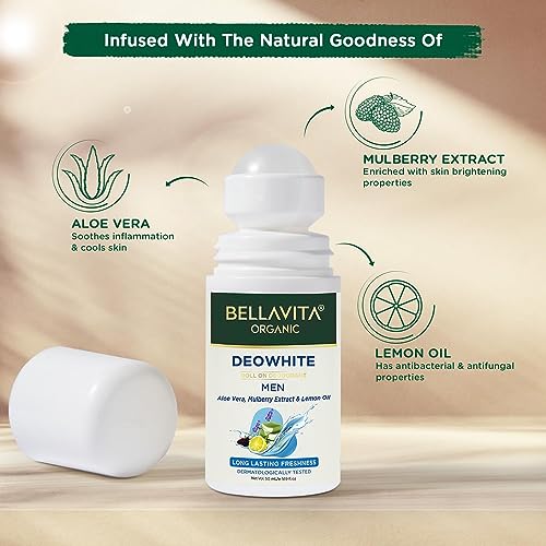 Bella Vita Organic Deo White Deodorant for Men Long Lasting Freshness 50ml Natural Roll On Under Arms Skin Whitening and Lightening for Dark UnderarmsUnlike other parts of our body the skin under the arms is extremely sensitive. The clothes we wear the products we use exposure to the sun accumulation of sweat dirt. all can lead to major skin concerns. Discoloration pigmentation acne marks and spots inflammation skin irritation & itching underarm odor etc are some to be listed. When we use perfumes or deodorants with chemicals the skin tends to get clogged resulting in excessive sweating and which leads to the bacterial formation and causes odor infections itchiness and more such uneasy skin concerns. They can also darken the area and underarm lightening can be extremely tricky whereas body odor discoloration skin infections etc can be taken care of with natural skincare products very easily. Being chemical-free natural products heal the skin from within and cause no harm to it. With the right blend of ingredients natural skincare products can be used for any skin concern. DeoWhite Roll-On Deodorant For Men is one such product. Made with the best natural and ayurvedic ingredients it takes care of all your skin concerns related to the underarms. Whether it is underarm skin whitening or body odor DeoWhite Roll-On For Men is the perfect blend of cucumber essential oils coconut castor oil and many more ayurvedic herbs and ingredients. It is one of the best roll-ons for men and is affordable. The natural fragrances are long-lasting and keep body odor at bay. The essential oils in this make it a chemical-free perfume and help lighten dark underarms naturally. This pocket-friendly yet premium product helps you smell good all day long.Bella Vita Organic Deo White Deodorant For Women Long Lasting 50 ml Roll on Natural Under Arms Skin Whitening and Lightening For Ladies Aluminium FreeOur underarm is an extremely sensitive area and the skin under the arms is prone to a lot more damage than most parts of our bodies. Also nobody likes to have an underarm odor and the accumulation of sweat bacteria dust and pollutants leads to exactly that. Waxing the area in addition leads to skin burns or discoloration pigmentation and darker underarms. Overexposure to the sun can lead to tan and sunburn. Not cleaning the area every day can lead to bacterial and fungal infections irritation itchiness and dryness. Excessive sweating can clog pores and lead to acne breakouts marks and spots. Using harmful chemicals and skin whitening products can further lead to skin burns and peels and underarm darkness removal can be a tricky concept. One needs to be extremely careful of what one uses to cater to oneâs skin needs. Using natural products for skin is a much better resolution. Being chemical-free natural products heal your skin from within without causing any further damage. And natural underarm whitening can be done only using home remedies or chemical-free products. DeoWhite Roll-On For Women by Bella Vita Organic is one such product. Its carefully hand-picked ingredients work on underarm odor pigmentation dark underarms discoloration due to waxing skin and sunburns acne and its marks it also forms a protective layer around the area to prevent the formation of bacteria and fungi. It lightens dark underarms and makes for a great deodorant too. Ingredients like cucumber vetiver essential oils coconut castor and ayurvedic herbs make DeoWhite the best natural product to remove tan lighten dark underarms treat body odor prevent excess sweating and clogging of pores. It also treats acne and its marks. It works on blemishes and sunburns as well. DeoWhite Roll-On For Women is the best affordable chemical-free perfume for women that heals the skin without any damage. You will no longer have to burn a hole in your pocket to lighten armpits or for long-lasting perfumes as DeoWhite will keep you covered on both ends.