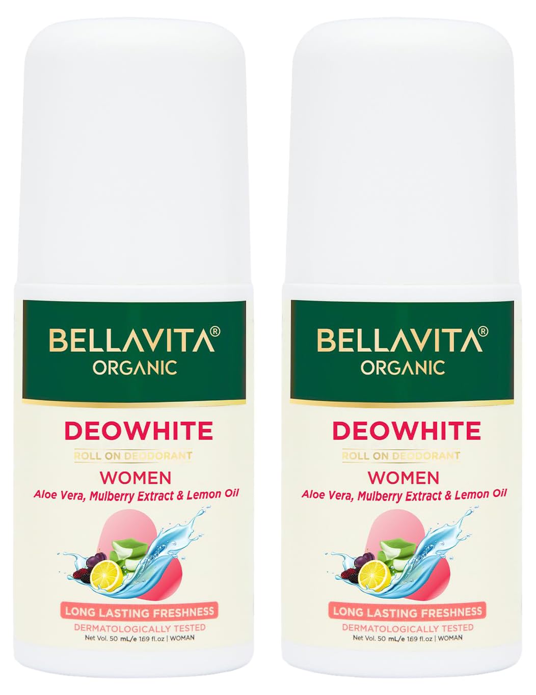 Bella Vita Organic Deo White Deodorant For Women Long Lasting 50 Ml Roll On Natural Under Arms Skin Whitening & Lightening For Ladies Aluminium Free Pack of 2