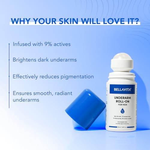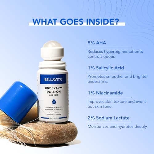 BELLAVITA Deo White Natural Underarm Roll On Deodorant for Men |Control Odour|Alcohol-Free| Antiperspirant for Long Lasting Freshness, 50ml