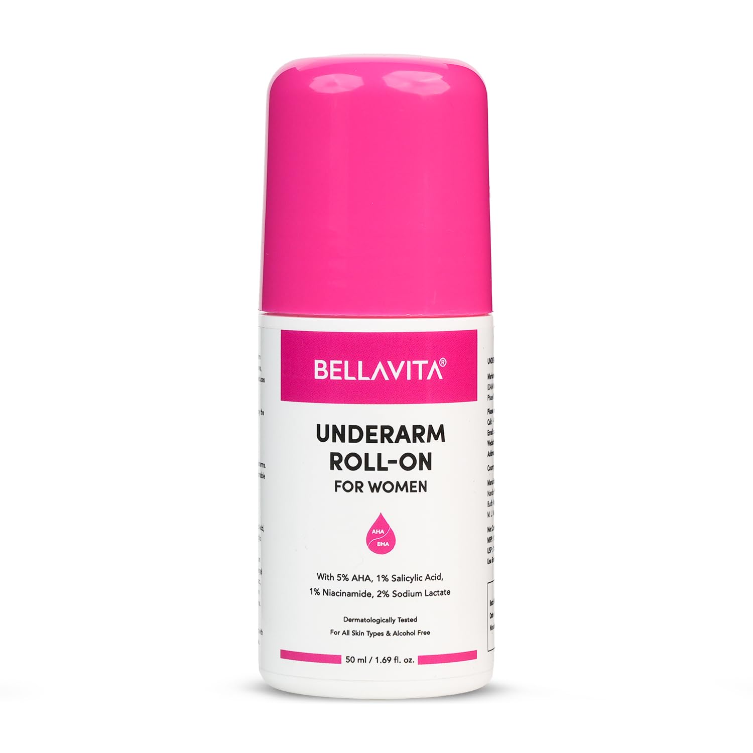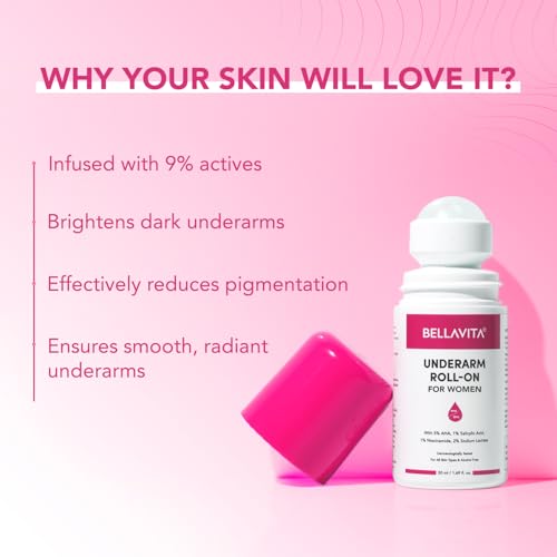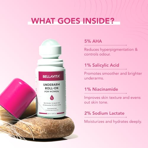 BELLAVITA Deo White Natural Underarm Roll On Deodorant for Women |Control Odour|Alcohol-Free| Antiperspirant for Long Lasting Freshness 50ml