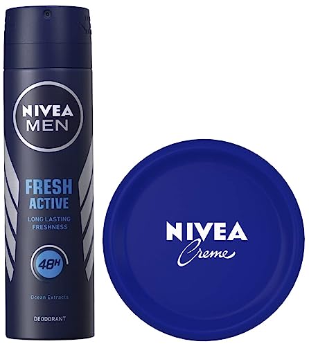 NIVEA MEN Deodorant Fresh Active Original 150mlNivea For Men Fresh Active Deodorant Nivea For Men Fresh Active Deodorant with ocean extracts delivers 24h confidence and anti-perspirant protection for a fresh feeling all day long. All day freshness 24h confidence anti-perspirant protection and gentleNIVEA Creme Multi Purpose Cream 200mlNivea Creme is a rich creamy moisturizer that smoothens and softens even extremely dry skin It can be used all over the body It gives excellent results on rough spots such as knees feet elbows and hands Its clinically proven formula helps your skin stay soft and supple all day long Nivea Creme soothes and rehydrates even the dryest skin Made with ingredients which work in harmony with your skin to bring out its natural beauty Suitable for all skin types