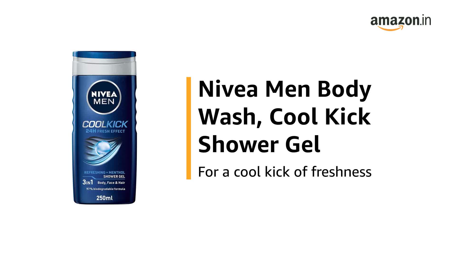 NIVEA Deodorant Roll-on Whitening Smooth Skin 50mlFairness for your underarms. New nivea whitening deodorant repairs your skin to give you fairer underarms.NIVEA MEN Hair Face & Body Wash Cool Kick Shower Gel 250mlBeautifully Fragranced FormulaRich Bubbly LatherGive your skin a refreshing blast of coolness and feel fresh with the Nivea Cool Kick Shower Gel that is perfect for men with an active lifestyle.This Cool Kick Shower Gel is perfect for using on your face body and hair for complete cleansing in a single wash.The icy menthol gives you an exhilarating feel every time you use it and instantly gives you a quick wake up.
