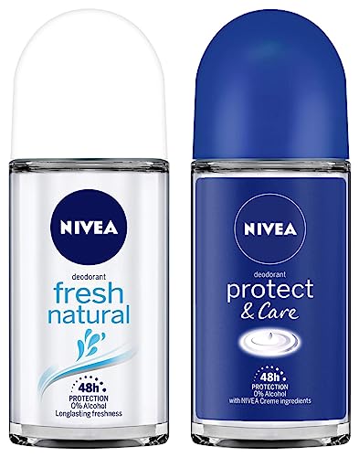 Nivea Deodorant Roll On, Protect & Care for Unisex, 50ml And Deodorant Roll On, Fresh Natural for Unisex, 50ml