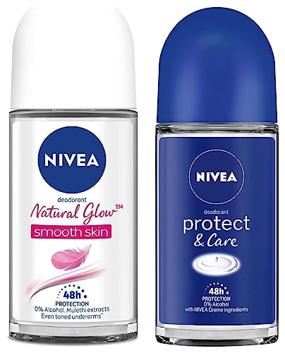 Nivea Deodorant Roll On, Protect & Care for Unisex, 50ml And Deodorant Roll-on, Whitening Smooth Skin for Unisex, 50ml