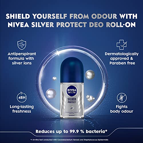 Nivea Deodorant Roll On, Silver Protect for Men, 50ml (Pack of 3)