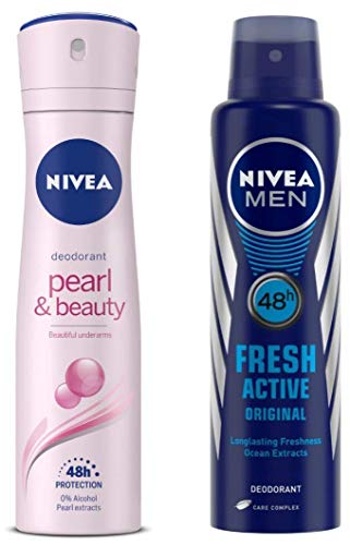 NIVEA Deodorant Pearl & Beauty 150mlWith precious pearl extracts to make your skin smooth soft and supple. Nivea deodorant Pearl & Beauty combines highly effective deodorant protection and beauty care making your underarms smooth beautiful and fragrant. The product's precious natural ingredient hydrolyzed pearl has a unique combination of natural substances and minerals which when applied keeps the skin smooth soft and supple.NIVEA MEN Deodorant Fresh Active Original 150mlNivea For Men Fresh Active Deodorant Nivea For Men Fresh Active Deodorant with ocean extracts delivers 24h confidence and anti-perspirant protection for a fresh feeling all day long. All day freshness 24h confidence anti-perspirant protection and gentle