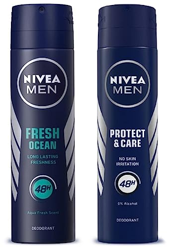 NIVEA Men Deodorant Protect & Care 150mlwhether you're hitting the gym hard at work in the office or hanging with friends Nivea men's protect and care deo is the perfect start to your day. The anti-perspirant formula provides you with long lasting protection without irritations so you can face your day feeling confident and comfortable. Nivea's commitment to producing the highest quality skin care products is reflected in our new anti-perspirant spray combining trusted ingredients with a clean masculine scent. Spray under the arms and you're ready to go long lasting protection without irritation skin tolerance dermatologically approvedNivea Deodorant for Men 150 millilitersDive into freshness with the Nivea men fresh ocean deodorant. The Nivea men fresh ocean deodorant with ocean extracts is the solution to get day long ocean freshness. Nivea Fresh Ocean Deodorant for Men gives you long-lasting odour protection. It contains Ocean Extracts for long-lasting freshness Nivea Care Complex to care for your gentle underarm skin and an aqua fresh fragrance to keep you energized all day long. The body spray is dermatologically approved for skin tolerance and should be sprayed directly on the underarm not on clothes or broken/irritated skin. Try out other Nivea deos & roll ons for men to find out your favourite! You can pick different Nivea men deos and roll ons for freshness odour control and care for your underarms. Use it as part of a refreshing routine. Start with Nivea Power Refresh Shower Gel then apply the Nivea Dark Spot Reduction Creme and follow it up with Nivea Fresh Ocean Deo for men