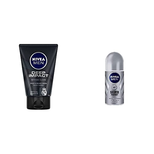 Nivea Men Face Wash, Deep Impact Intense Clean, 100g & Men Deodorant Roll On, Silver Protect, 50ml