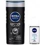 Nivea Men Shower Gel, Active Clean Body Wash, Men, 250ml & Deodorant Roll On, Fresh Natural, 50ml