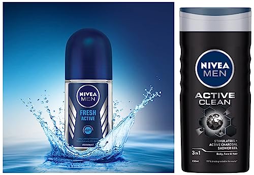 NIVEA MEN Hair Face & Body Wash Active Clean Shower Gel 250mlNivea Men Active Clean Shower gel (250ml)NIVEA MEN Deodorant Roll-on Fresh Active Original 50mlNivea For Men Fresh Active Deodorant Roll On : Nivea For Men Fresh Active Deodorant Roll-On is both an anti-perspirant and a deodorant.Containing Ocean Extracts this deo provides effective 24 hour protection from both odour and wetness.The formula contains no alcohol colorings or preservatives so is especially kind to your skin