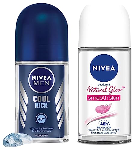 Nivea Roll-On Deodorant, Cool Kick for Men, 50ml And Deodorant Roll-on, Whitening Smooth Skin for Men, 50ml