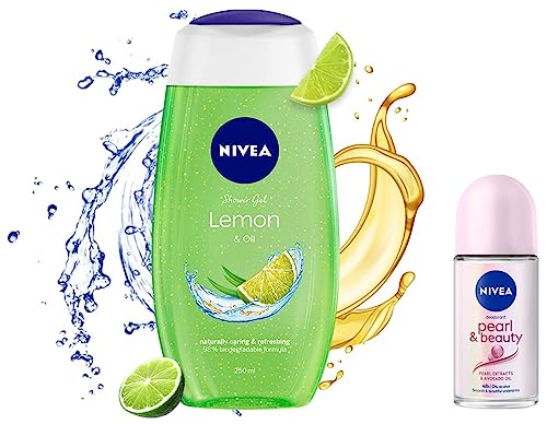 NIVEA Shower Gel Lemon & Oil 250mlLet this fresh shower gel with care oil pearls envelop your skin with a silky soft foam while its revitalizing scent of lemon stimulates your senses. The caring formula pampers your skin leaving it feeling moisturized. Turn an everyday shower into a moment full of freshness & care.NIVEA Anti-Perspirant Roll-On Pearl & Beauty 50mlThis Nivea deodorant provides 48 hours of effective antiperspirant protection without alcohol or colourants. It is scientifically proven to effectively keep your underarms feeling fresh whilst supporting an even skin tone.