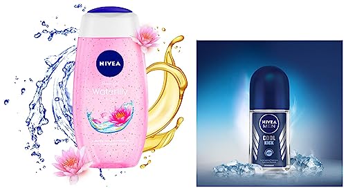 NIVEA Shower Gel, Water Lily & Oil Body Wash, Women, 250ml And NIVEA Men Roll-On Deodorant, Cool Kick, 50ml