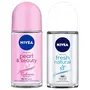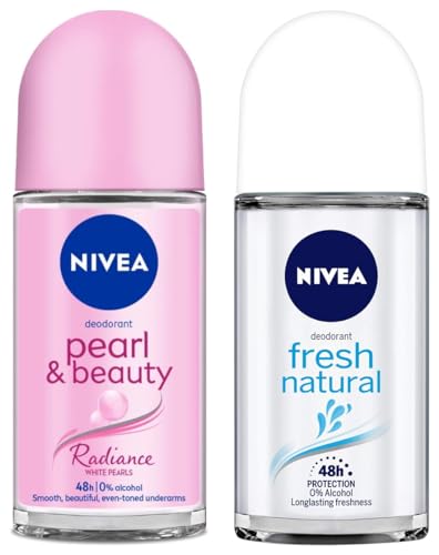 NIVEA Deodorant Roll On Pearl & Beauty Radiance 50 ml | For Eventoned Smooth & Beautiful UnderarmsNIVEA Pearl & Beauty Radiance Deodorant Roll on is an underarm skincare product for women. It has 0% alcohol and is to be directly applied to the delicate underarm Skin. Its gentle skincare formula comes with the goodness of white pearl extracts which results in naturally eventoned smoothbeautiful underarms skin. This is complementary routine solving a woman's underarm skin issues like dark rough & patchy underarms. These are pertinent issues for woman as their underarms go through harsh hair removal routine like Waxing Shaving etc. These harsh hair removal routines are a must for leading an active lifestyle (social events workouts at offices etc.) as a woman's underarms are constantly under spotlight.This adds a feeling of constriction in her active lifestyle and hampers her confidence. Try the New NIVEA Pearl & Beauty Radiance Deo Roll on for Naturally Eventoned smooth beautiful underarms and a mild feminine fragrance that lasts longeNivea Deodorant Roll On Fresh Natural for Unisex 50mlCare for your underarms with Nivea fresh natural roll on. It contains ocean extracts which give you day long odour protection and long lasting freshness. Its formula combines Niveaâs gentle care and reliable protection. The Nivea fresh natural roll on is reliable for taking care of your underarm skin.