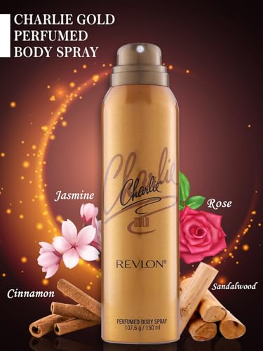 HomeBeautyBodyBody CareDeodorants/Roll OnsRevlon Women's Charlie Gold Perfumed Body Spray | Vibrant, Feminine And Naturally Sensual | Fragrance of Jasmine, Rose, Sandalwood | Skin Friendly And Long Lasting | Gold, 150ml