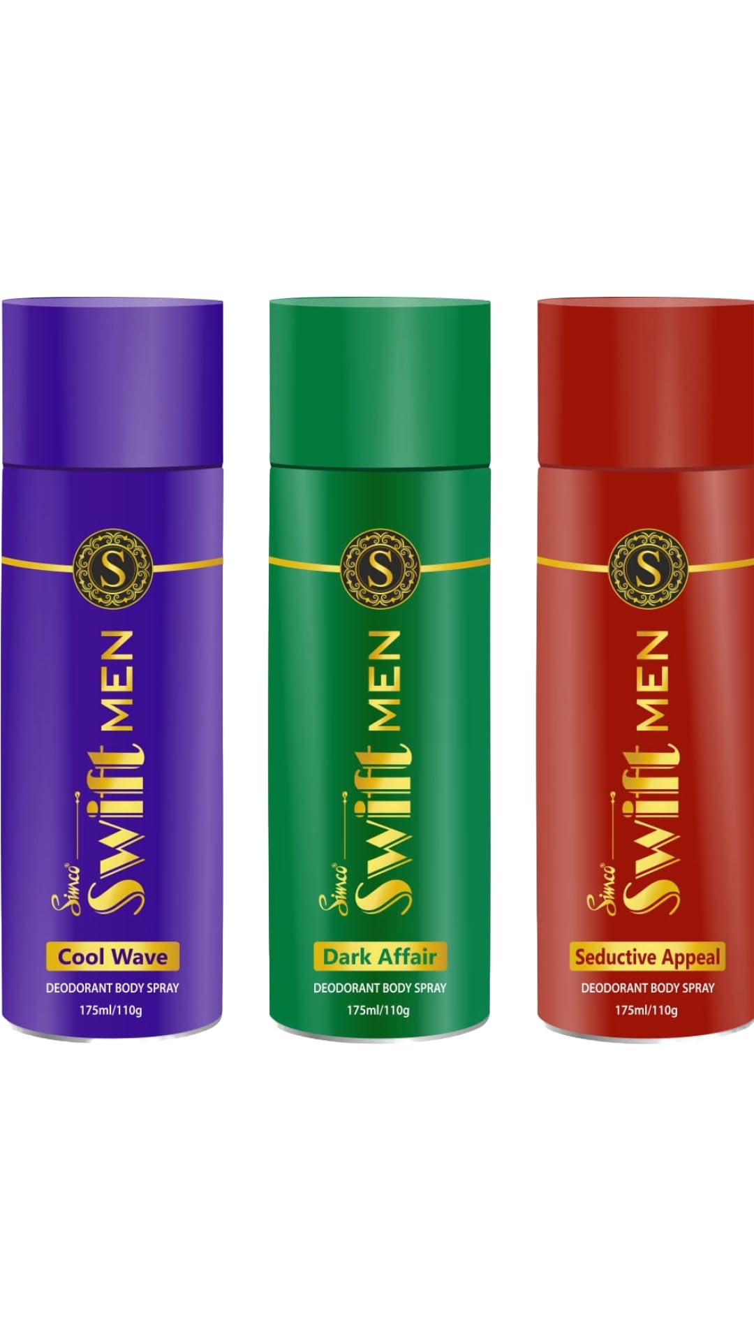 Simco Swift Deodorant for Men | Seductive Appeal Cool Wave & Dark Affair | Deep & Long Lasting Fragrance | Pack of 3 175 ml each