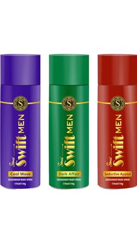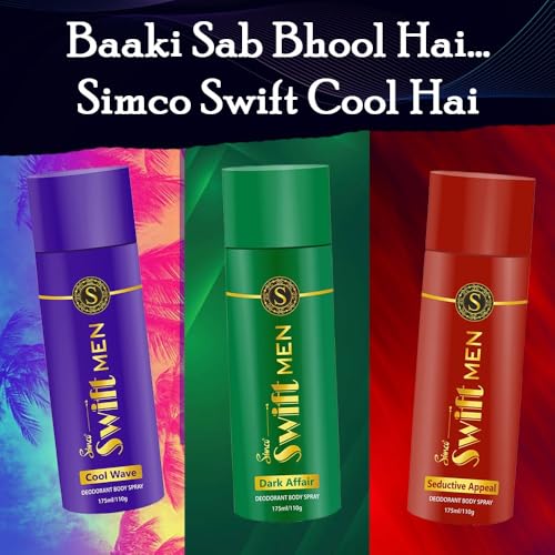 HomeBeautyBodyBody CareDeodorants/Roll OnsSIMCO Swift Deodorant Spray For Men | Seductive Appeal, Cool Wave & Dark Affair | Deep & Long Lasting Fragrance | Pack Of 3, 175 Ml Each