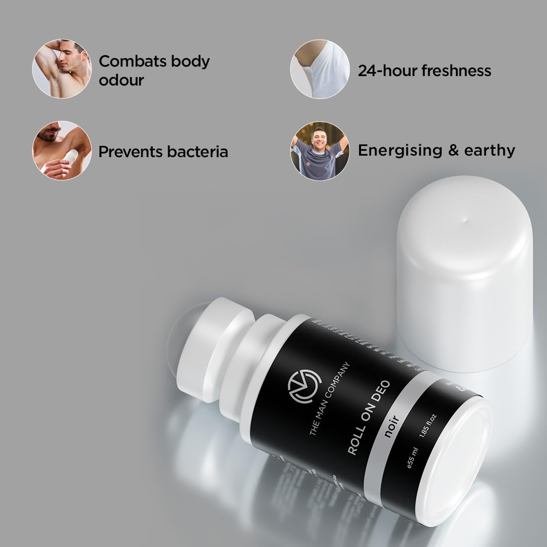 The Man Company Deodrant Roll on Combo Set for Men - Noir | Premium Fragrance with 24-Hour Freshness | Removes Body Odour | Compact & Easy-To-Use - 55ml*2
