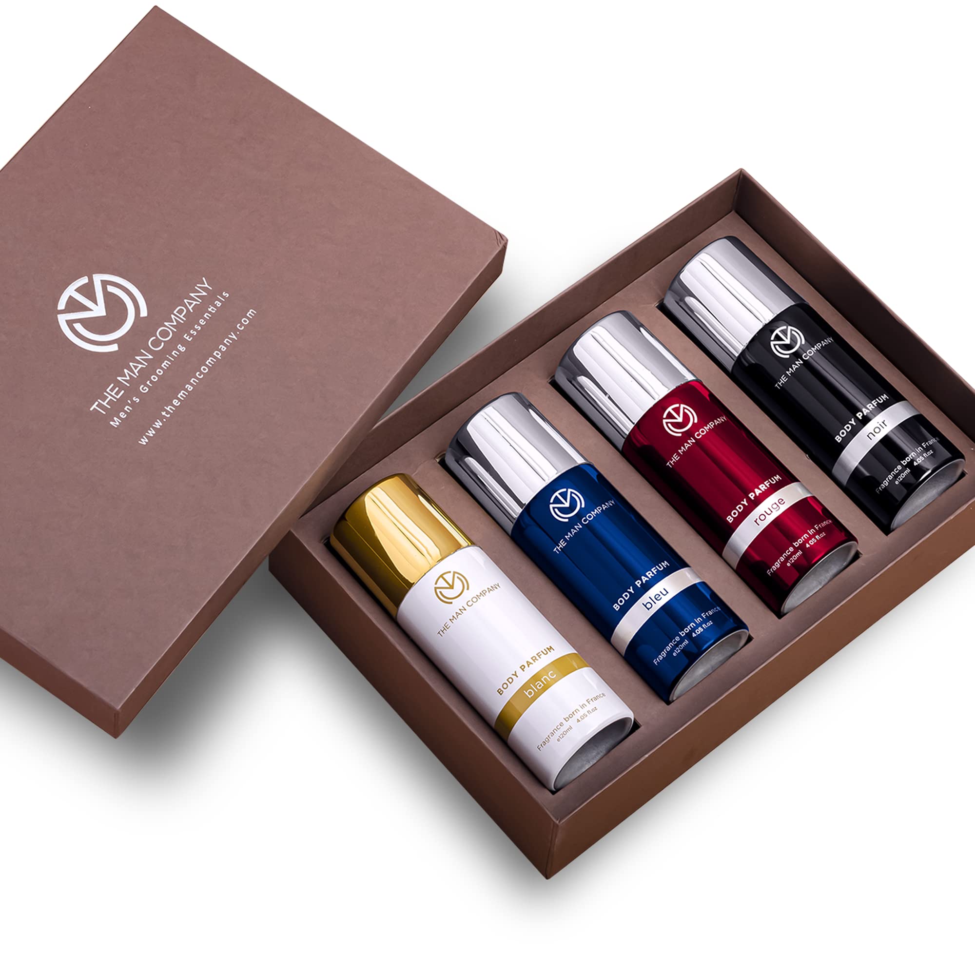 This is my first The Man Company Product.Coming to the box first... It's a dark chocolate coloured box having The Man Company Logo in silver gloss. The perfume cans also got a glossy finish too. Looks premium considering the price. Good Presentation. ??4 different body perfumes for different scenarios as per The Man Company, but u can apply whichever perfume u like no matter what the scenario is. Perfumes notes aren't mentioned on the perfume bottle bt u can get it on some YT perfume review channels or net.Should focus on packaging. I received the order with minor dents on perfume can, but nothing that serious.At last, overall it's a value for money combo... As usual mine favourite is Blanc too, then Rouge... Bleu and Noir are unique fragrances I've ever come across, so I need to get used to it.Longetivity is okayish ( Around 4 to 5 hrs ). It would b unfair to expect too much from a budget friendly fragrance.M Happy with the buy.