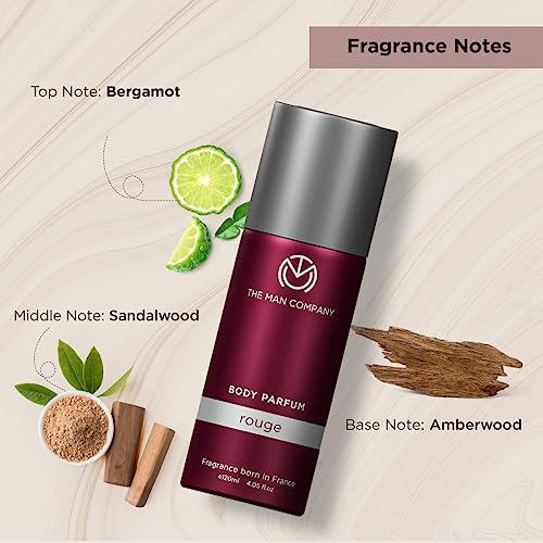 The Man Company Rouge Perfume For Men, Long Lasting Fragrance, No Gas Deodorant Combo Set For Men, Luxury Premium Body Spray - 120Ml * 2 - Sandalwood