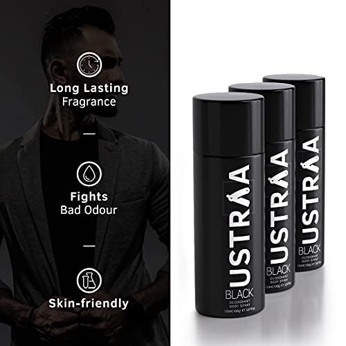 HomeBeautyBodyBody CareDeodorants/Roll OnsUstraa Black Deodorant for Men - 3 x 150ml - Strong and Intense Fragrance | Boosts freshness | Fights Bad Odour, Prevents Itching & Irritation with Aloe Vera (Set Of 3)