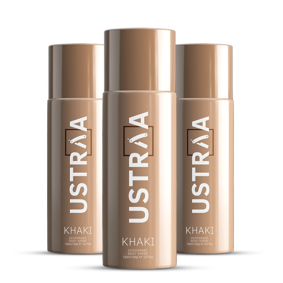 HomeBeautyBodyBody CareDeodorants/Roll OnsUSTRAA Khaki Deodorant Body Spray For Men - 3 x 150ml | Rusty Manly Long-Lasting Fragrance | Skin-friendly Deodorant with Mist Spray | Keeps Odour in Check (Set of 3)