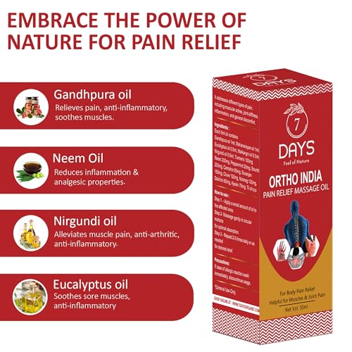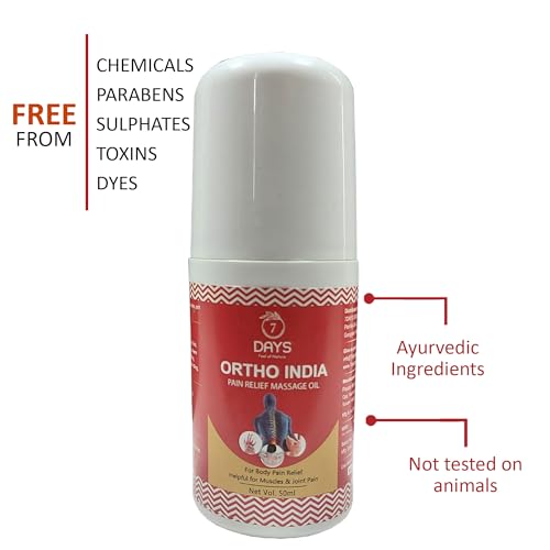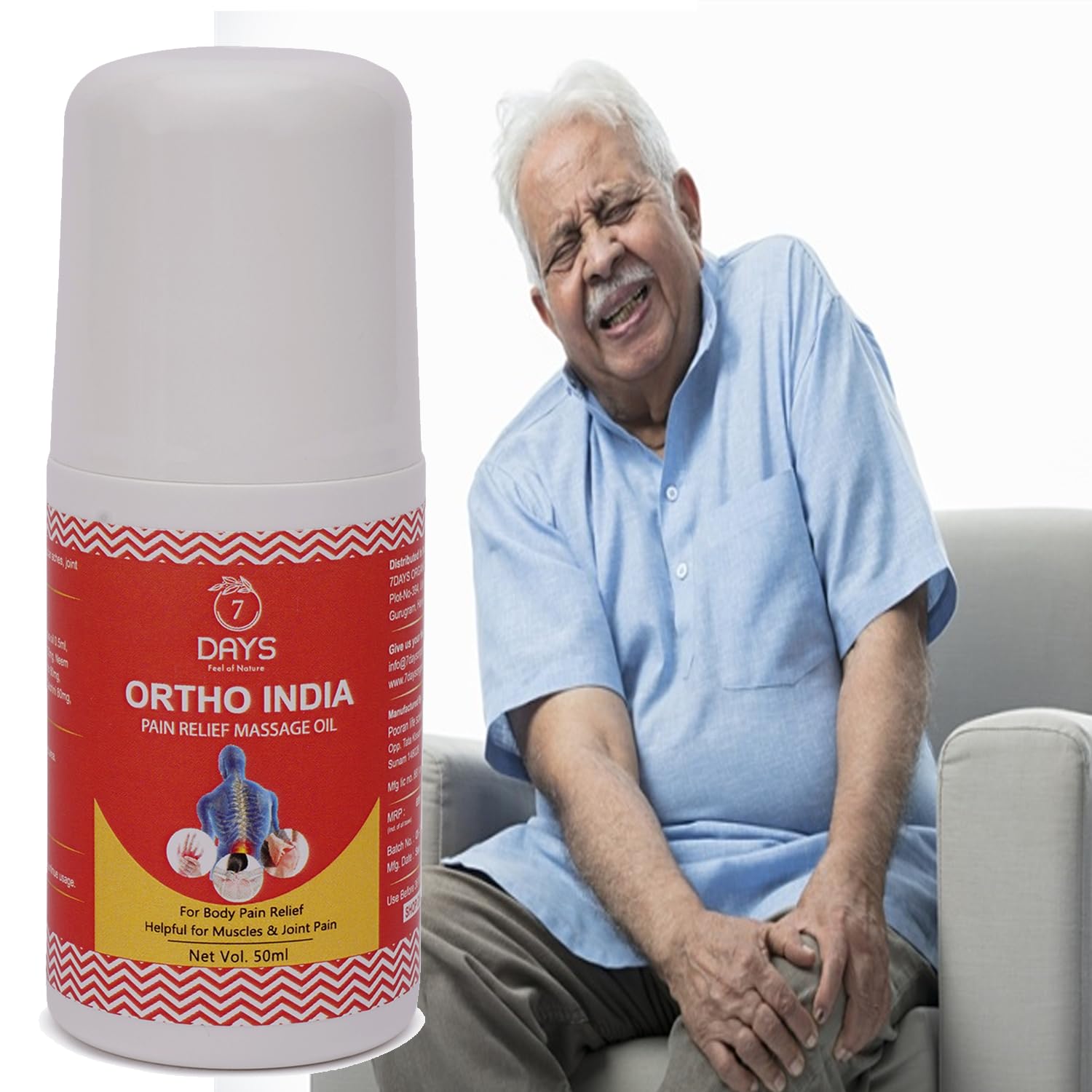 With growing age joints of the body start weaken and ultimately may suffer from the severe pain while our body makes movements. 7 DAYS Ortho India massage Oil with soothing and powerful blend of many herbal oils gives relief from Joint Pain Inflammation Soreness and any other joint discomfort.Ortho India pain relief massage Oil is a potent concoction prepared from Mahanrayan oil Eucalyptus oil Peppermint and many other herb ingredients. It gives you visible results in few days from swollen joints and joint pain with improved muscle mobility.