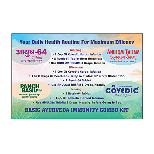 • Direction for use: MORNING: 1 Cup Of Herbal Infusion Tea 2 Ayush-64 Tablet After Breakfast Use Anulom Tailam 3 Drop Nasally. AFTERNOON: 1 Cup Of Herbal Infusion tea 1 To 2 Drop Of Pach Basil Drop In A Glass Of Warm Water/ Tea 2 Ayush-64 Tablet Use Anulom