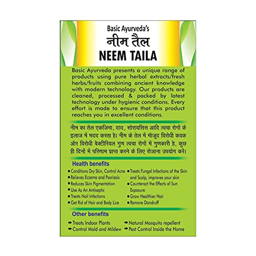 • Basic Ayurveda Neem Taila is an ayurvedic oil that has several health benefits. Helps to protects the skin from environmental harm.