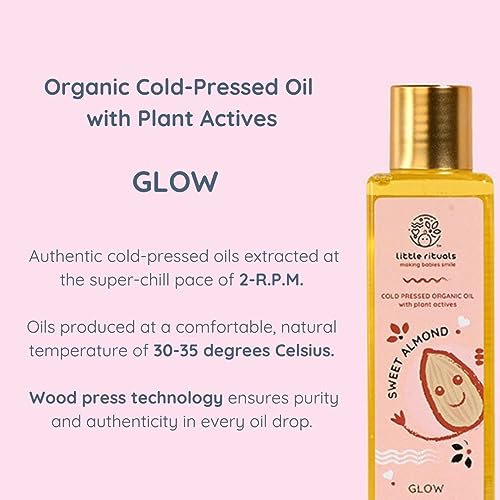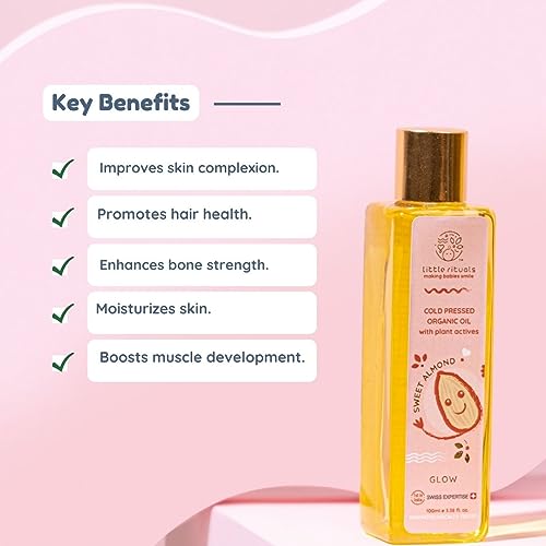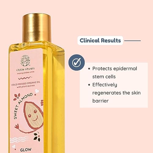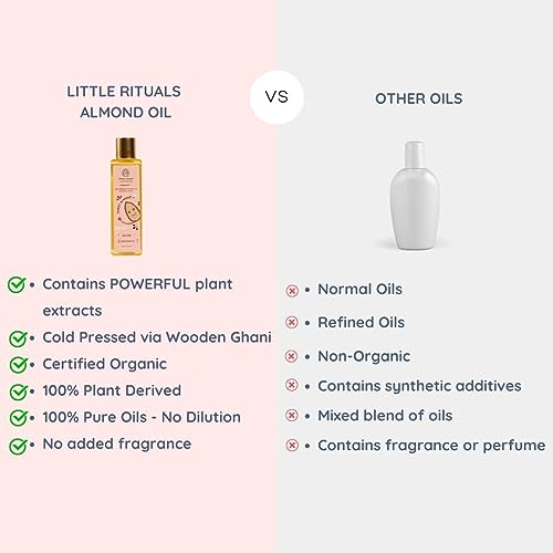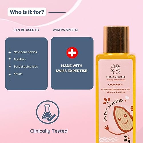 Little Rituals SWEET ALMOND (BADAM OIL) Baby Massage Oil and Hair oil, Cold Pressed and Certified ORGANIC with SWISS Plant Actives. Dermatologist Tested by Pediatrics, Mild & Gentle & Safe (200 ML)