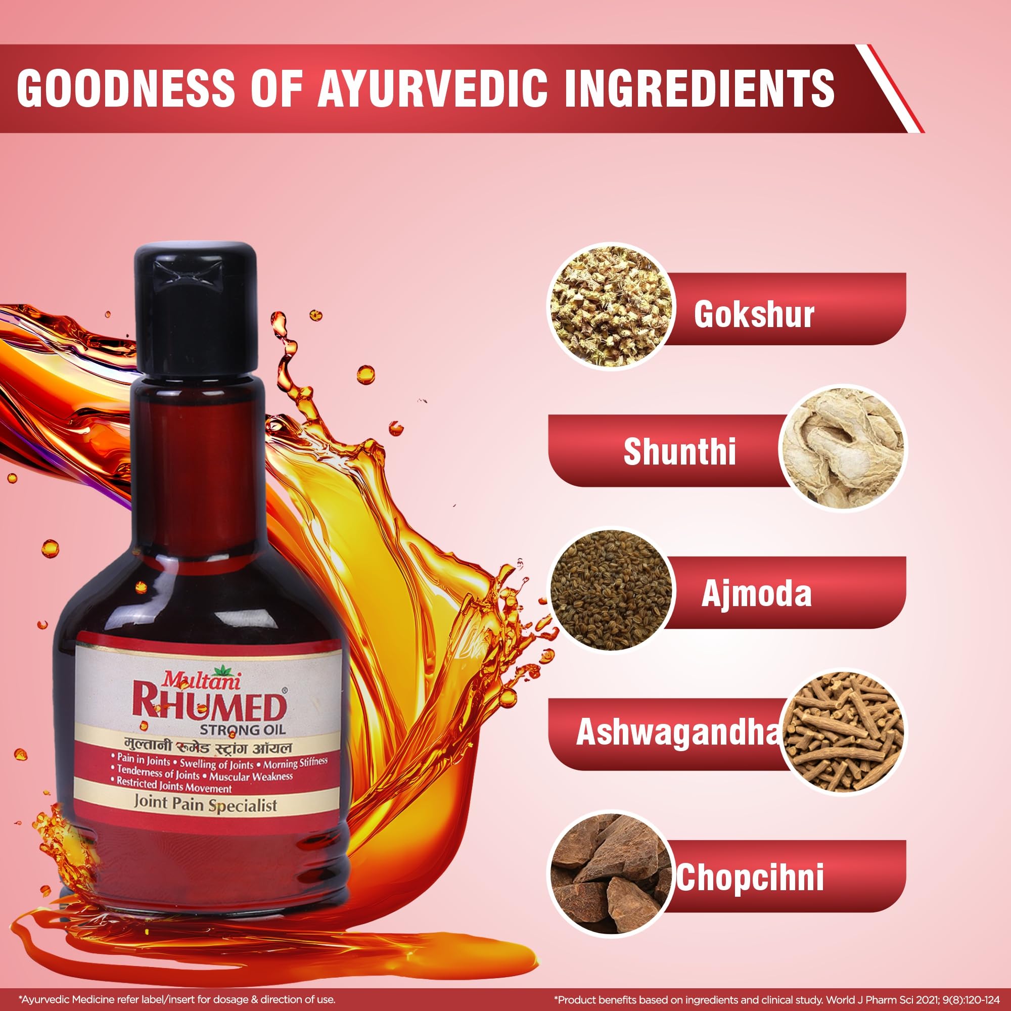 • Joint Pain & Stiffness Management Multani Rhumed Strong Oil Has Anti-Inflammatory Properties Which Are Helpful In Reducing Joint Pain & Stiffness While Improving Overall Mobility. Our Ayurvedic Formula Is Helpful In Morning Stiffness Swelling In Joints Te