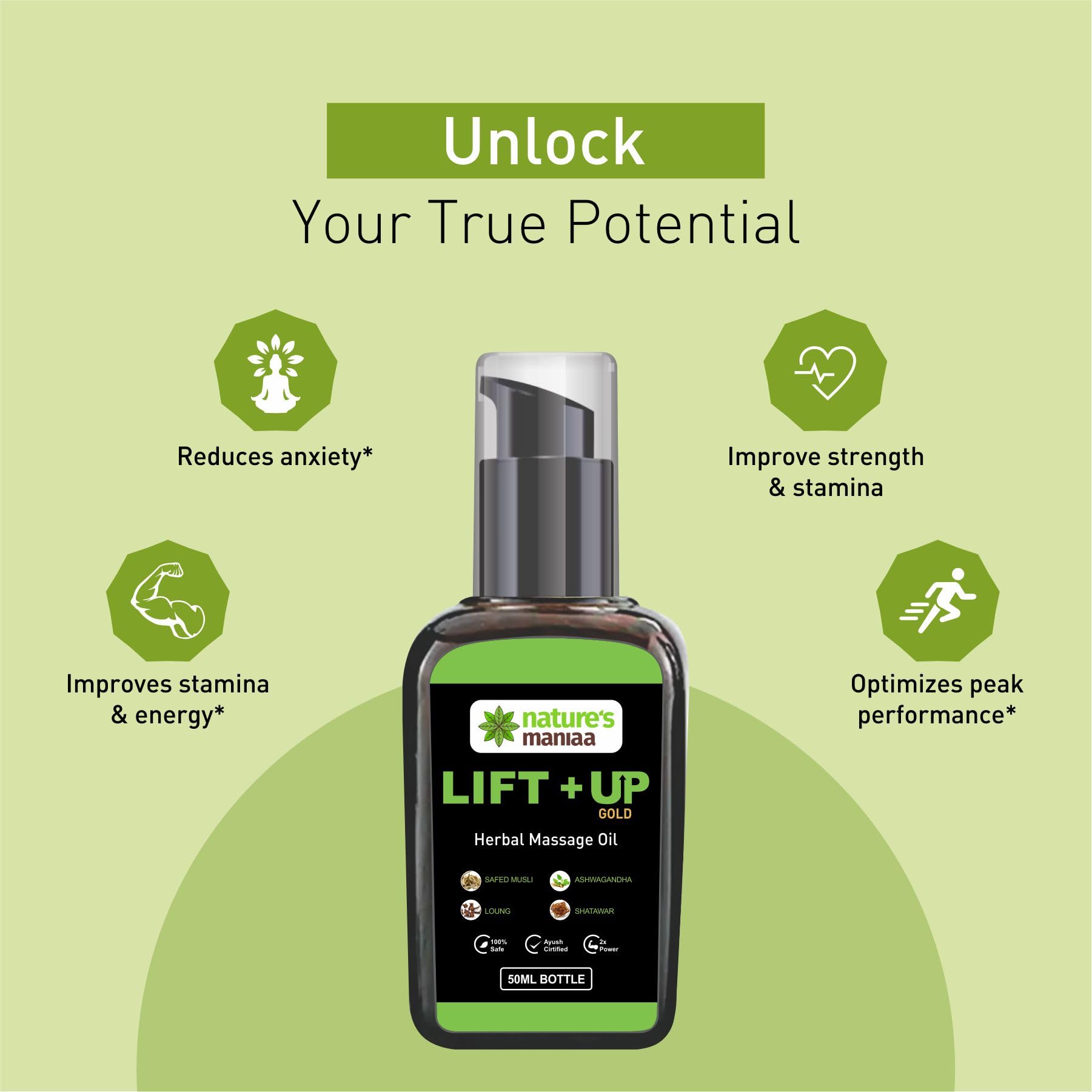 Natural Herbal Lift's Up Massage Oil For Men - For Strength Stamina & Performance (Pack Of 1) - 50ml