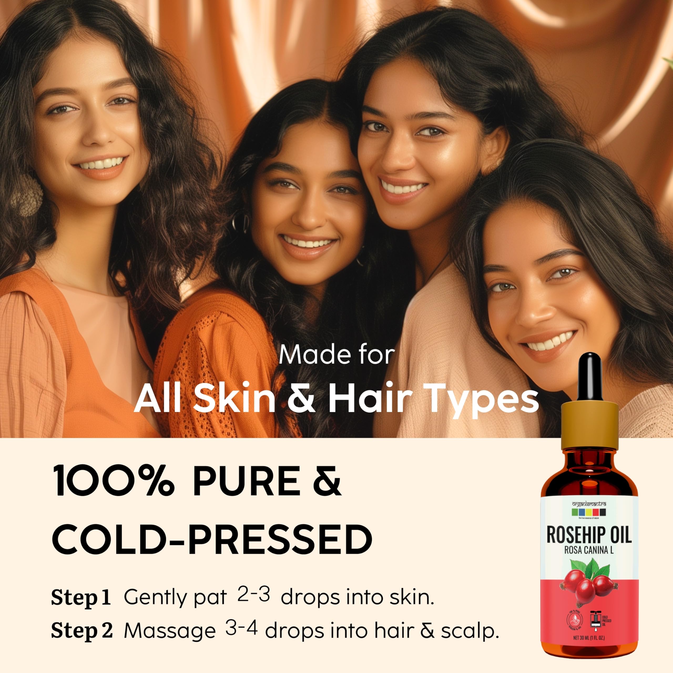 HomeBeautyBodyBody CareMassage OilsOrganix Mantra Rosehip Seed Body Oil for Face Wrinkles Fine Lines Under Eye Curly Hair | 100% Pure Natural & Cold Pressed Oil 30ML