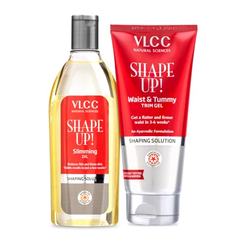 VLCC Shape Up Slimming Oil - 200ml and VLCC Shape Up Waist & Tummy Trim Gel - 200g | Fights Cellulite, and Reduces Flab | For a Flatter and Firmer Waist | Helps Tone Muscles and Stubborn Fat