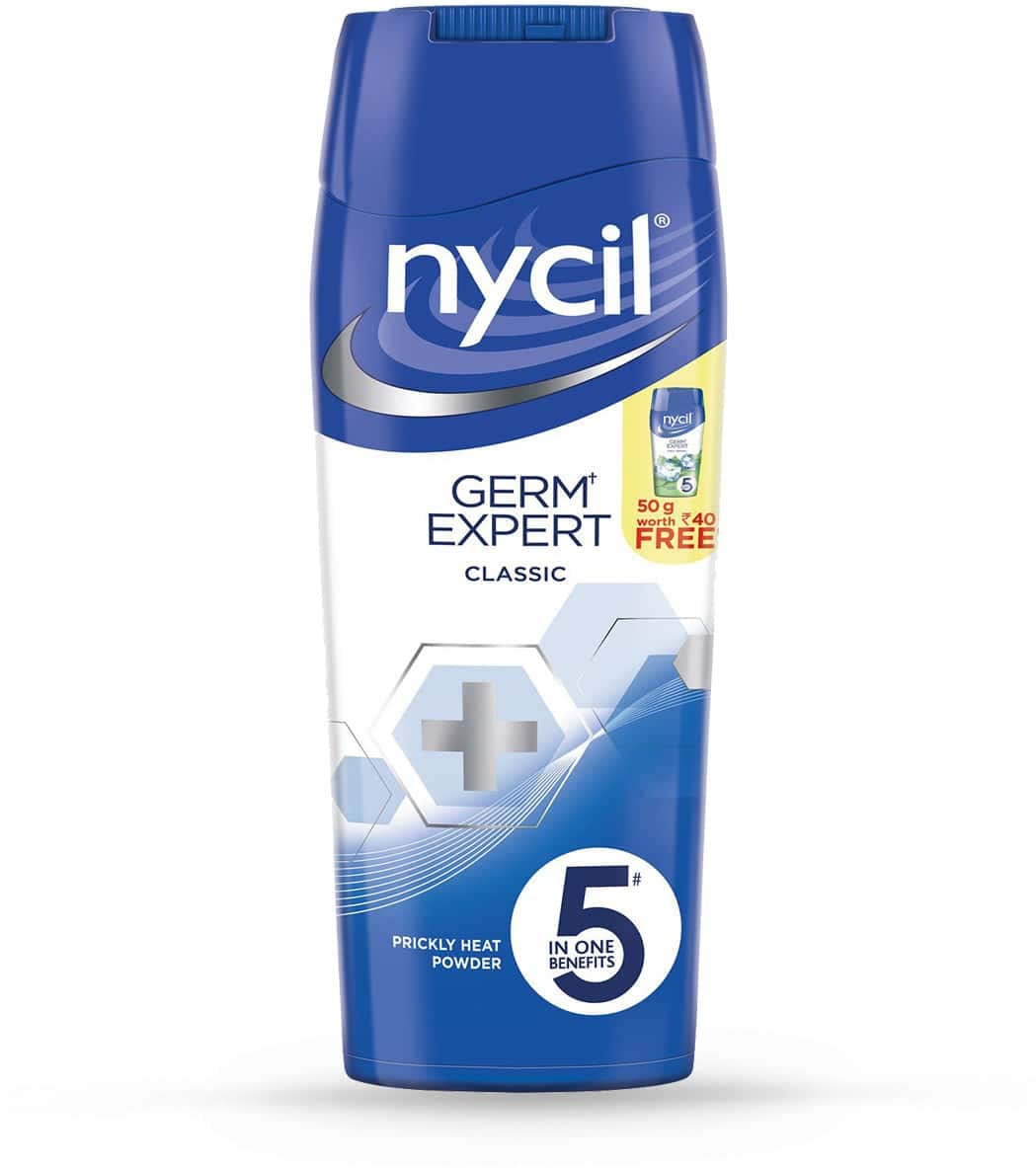 Nycil Cool Prickly Heat Talcum Powder: Say Goodbye to Summer Skin Woes!Beat the heat and soothe your skin with Nycil Cool Prickly Heat Talcum Powder India's #1 choice for prickly heat relief!Keywords: prickly heat powder summer skin carecooling talcum powder itching relief rash relief sweat absorption body odor control Nycil Cool Nycil Germ Expert neem oil pudinasandalwoodrose waterIndia's trusted brandinstant reliefclinically proven3-day visible results.Description:Turn up the heat not your discomfort! Nycil Cool Prickly Heat Talcum Powder is your summer savior offering instant relief from the burning itching and discomfort caused by prickly heat. Its unique germ-fighting formula powered by neem oil and pudina tackles the root cause of prickly heat while its cooling talc absorbs sweat and keeps you fresh.Here's why Nycil Cool is the ultimate summer skin hero:Instant relief from prickly heat: Soothe itching burning and rashes in a flash.Clinically proven results: See visible improvement in 3 days - say goodbye to summer skin woes!Long-lasting coolness: Stay fresh and comfortable even on the hottest days.Germ-fighting power: Neem oil and pudina fight off bacteria that cause prickly heat.Sweat absorption: Control sweat and reduce body odor for all-day confidence.Gentle on skin: Suitable for all skin types even sensitive skin.Choice of scents: Available in classic herbal chandan and gulabjal fragrances.More than just a powder Nycil Cool is a summer essential! Trust India's most loved prickly heat powder to keep you cool comfortable and confident all season long.Order your Nycil Cool Prickly Heat Talcum Powder today and experience the difference!#NycilCool #PricklyHeatRelief #SummerSkinCare #India'sChoice