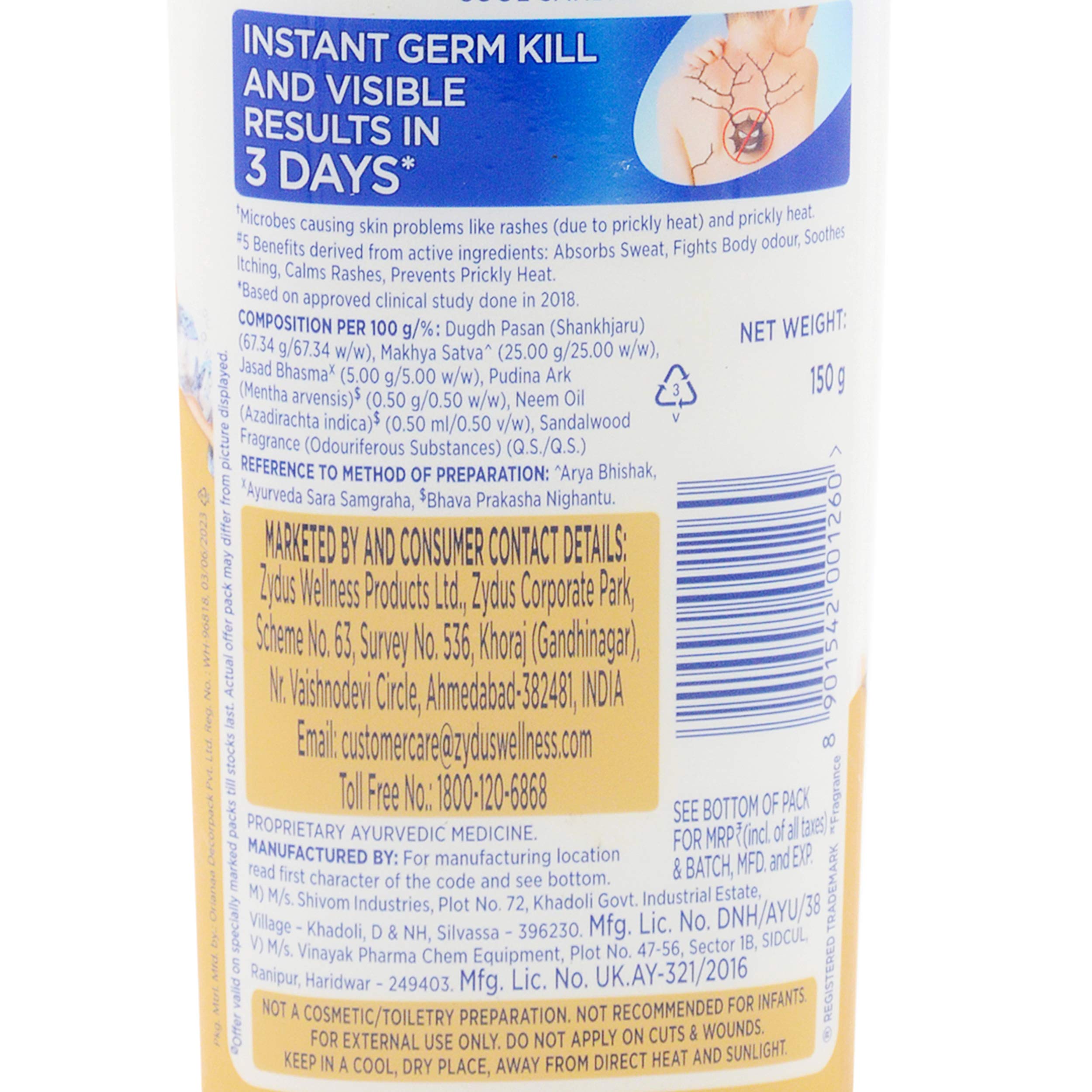 Make summers cool and comfortable with Nycil Cool Chandans unique Germ Fighter Formula that protects you from prickly heat causing germs and soothes the skin keeping it refreshed. Nycil Cool Chandan has the goodness of neem oil to combat germs and effectively absorbs sweat and keeps skin dry also solving problems of body odour itching and rashes.
