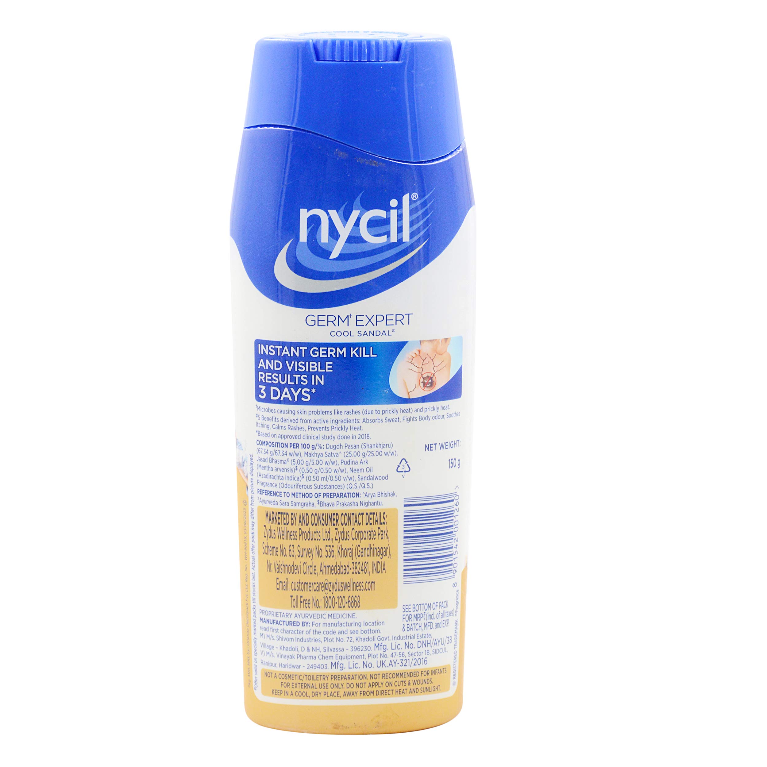 Nycil Germ Expert Cool Sandal Prickly Heat Powder Pack of 150 gm