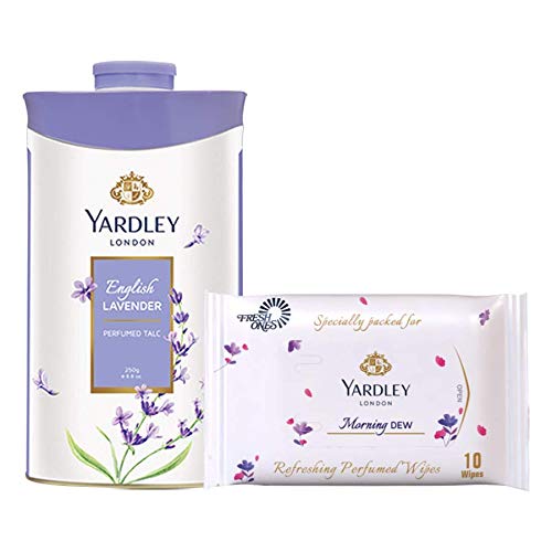 Yardley London English Lavender Perfumed Talc for Women 250g with Yardley London Wet Wipes (10 wipes) Free