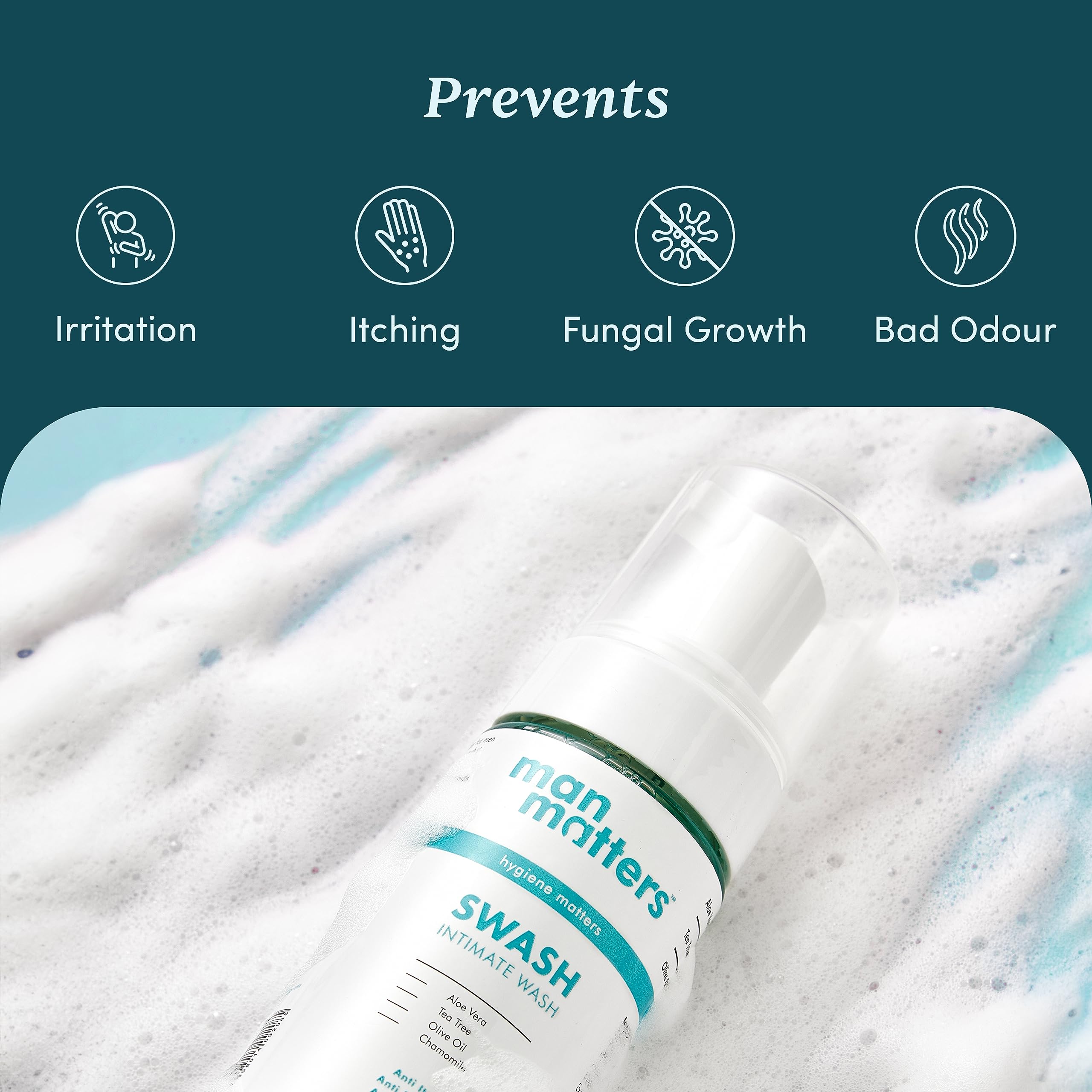 HomeBeautyBodyFeminine HygieneMan Matters Intimate Wash 120ml for Men- Anti Bacterial Anti Itch Anti Odour | Better Private Parts Hygiene| pH Balanced Intimate Hygiene Wash with Aloe Vera Tea Tree | Pack of 2