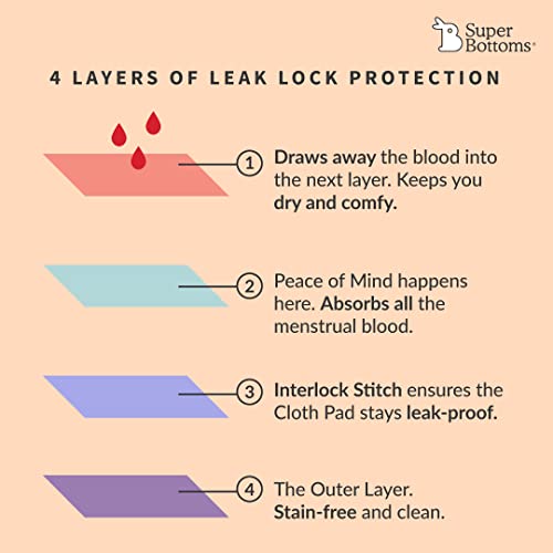 SuperBottoms Flow Lock Cloth Pads | Reusable Menstrual Pads | 2X Absorption, Lasts 7-8 Hrs | Complete Leak Lock | 3-day complete set | Rash-free pads | Pack of 4 Overnight XL Pads