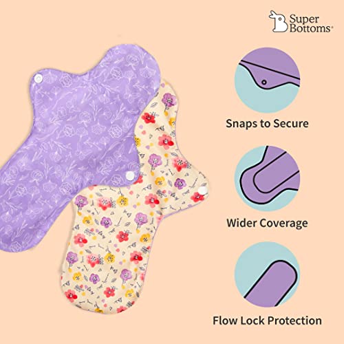 SuperBottoms Flow Lock Cloth Pads | Reusable Menstrual Pads | 2X Absorption, Lasts 7-8 Hrs | Complete Leak Lock | 5-day complete set | Rash-free pads | Pack of 9 Regular & 3 Overnight XL Pads