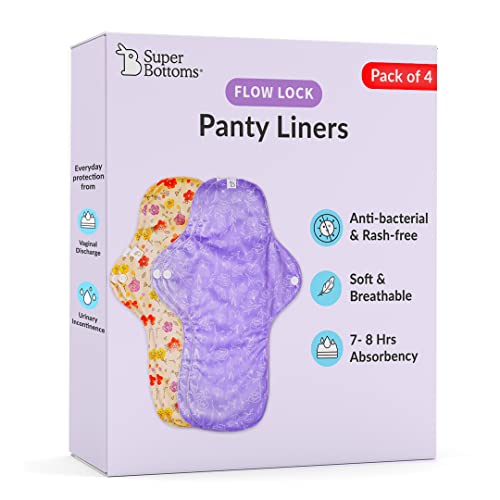 SuperBottoms Flow Lock Panty Liners | Extra Long Reusable Liners, 28cm | 2X Absorption, Lasts 7-8Hrs | Complete Leakproof with secured wings | 100% Cotton, Rash-free | Pack of 4 Liners with Free Pouch
