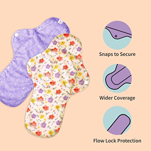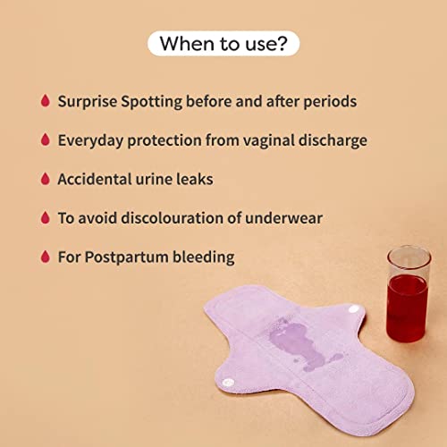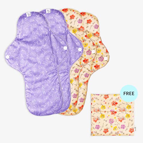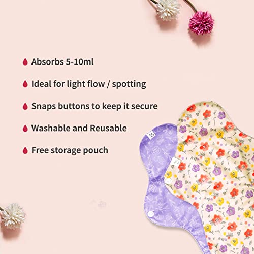 SuperBottoms Flow Lock Panty Liners | Extra Long Reusable Liners 28cm | 2X Absorption Lasts 7-8Hrs | Complete Leakproof with secured wings | 100% Cotton Rash-free | Pack of 4 Liners with Free Pouch
