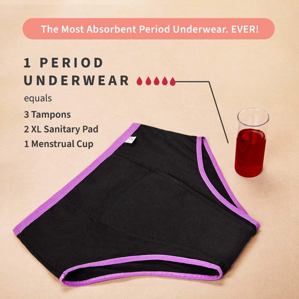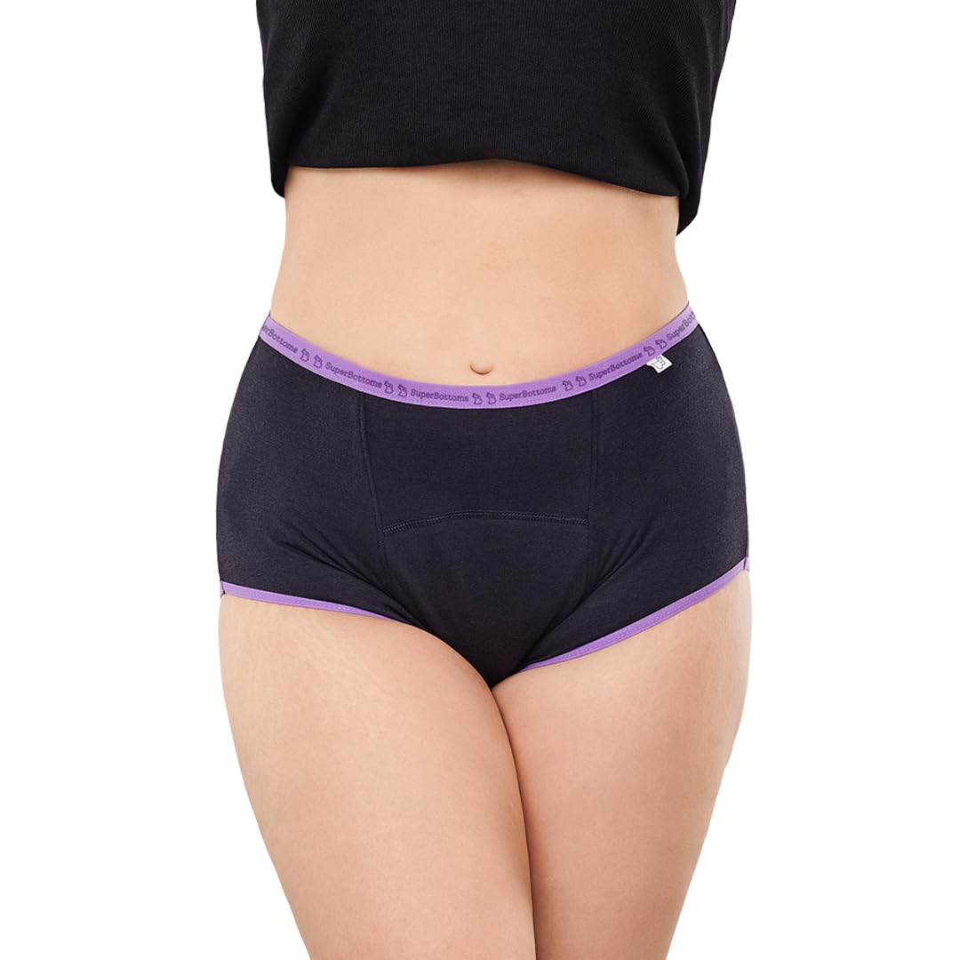 HomeBeautyBodyFeminine Hygienesuperbottoms MaxAbsorb Period Underwear | Period Panty for Women | 8Hr Absorption | No Leaks, No Stains | High Waist, Full Coverage | Bamboo Fabric + Cotton(Black,Size:L)